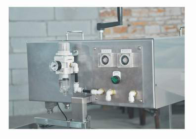 3.脫模油存儲于壓力罐中,以氣壓壓出脫模油,經(jīng)雙流體噴嘴與空氣混合后,形成顆粒狀并噴到烤盤上。通過調(diào)節(jié)設(shè)備上的各調(diào)節(jié)器,可方便地調(diào)出客戶所需的油量及顆粒。